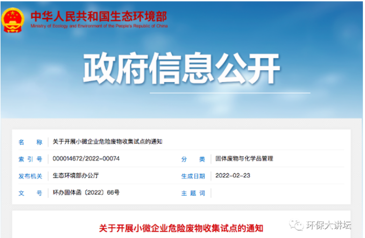 生態(tài)環(huán)境部:關(guān)于開展小微企業(yè)危險(xiǎn)廢物收集試點(diǎn)的通知 惠州環(huán)保 惠州危廢回收 惠州固廢平臺(tái)填報(bào)